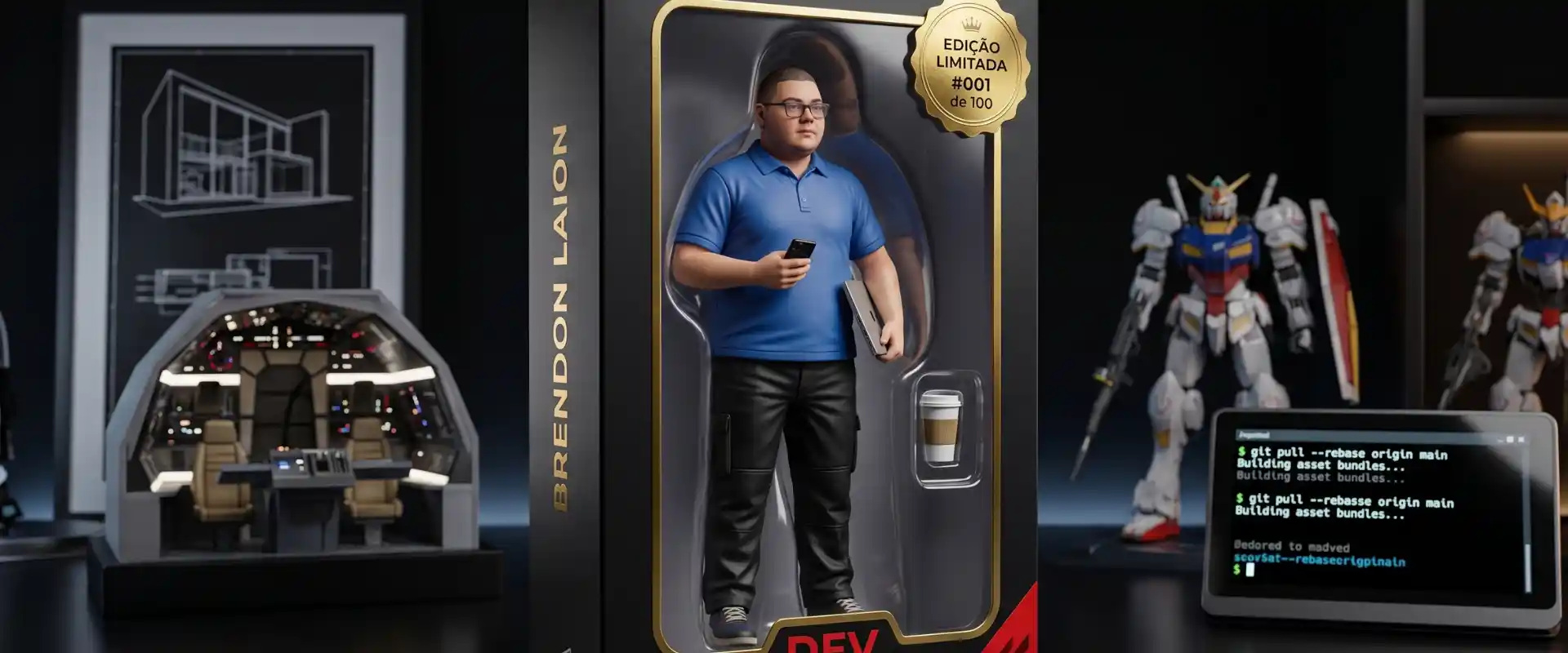 💼 Prompt B-03 — Action figure em cenário de trabalho dentro da caixa