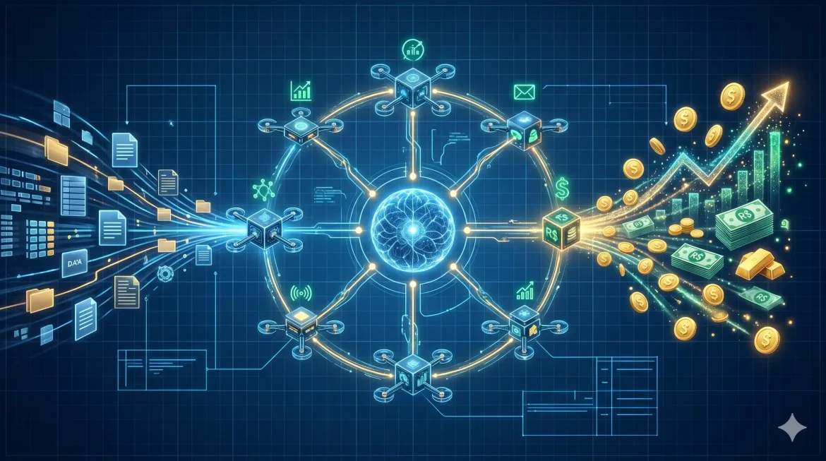 O custo de não enxergar isso é silencioso: você economiza 2 horas usando IA para escrever um e-mail e perde 20 horas coordenando manualmente o que poderia ser um fluxo automático. Cada tarefa que você ainda executa em sequência — pesquisa, depois análise, depois redação, depois revisão, depois publicação — poderia ser uma rede onde cada agente especializado entrega para o próximo sem você no meio.