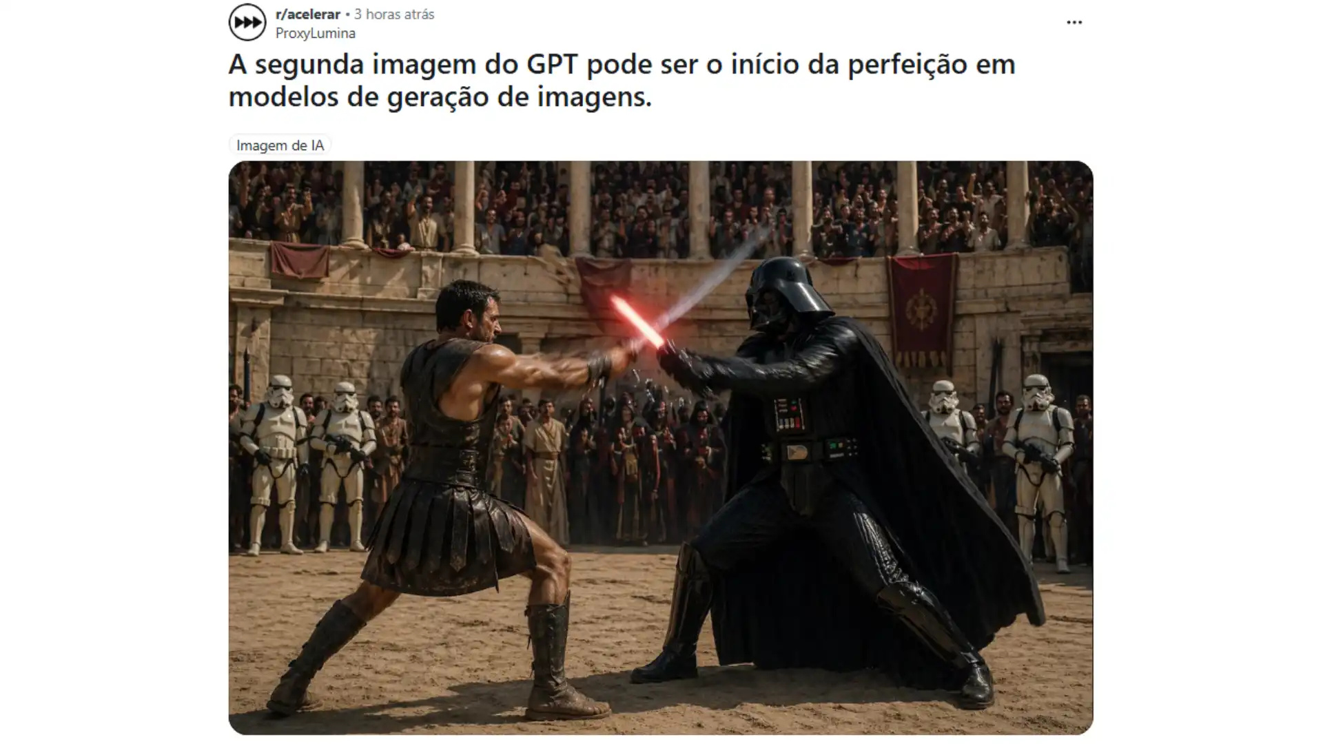 Quando alguém pede uma imagem simples, o modelo usa o caminho mais fácil. Os testes extremos do Reddit — personagens em poses incomuns, cenas com múltiplos objetos sobrepostos, textos em idiomas raros dentro da imagem — forçam o modelo a revelar onde sua arquitetura realmente vacila. Em r/ChatGPT, um post com 4.200 upvotes mostrou que pedir “uma cena de rua de Tóquio às 3h da manhã com chuva, reflexo no asfalto e 4 personagens diferentes visíveis” gerou uma imagem coerente na primeira tentativa — o que versões anteriores nunca conseguiram.