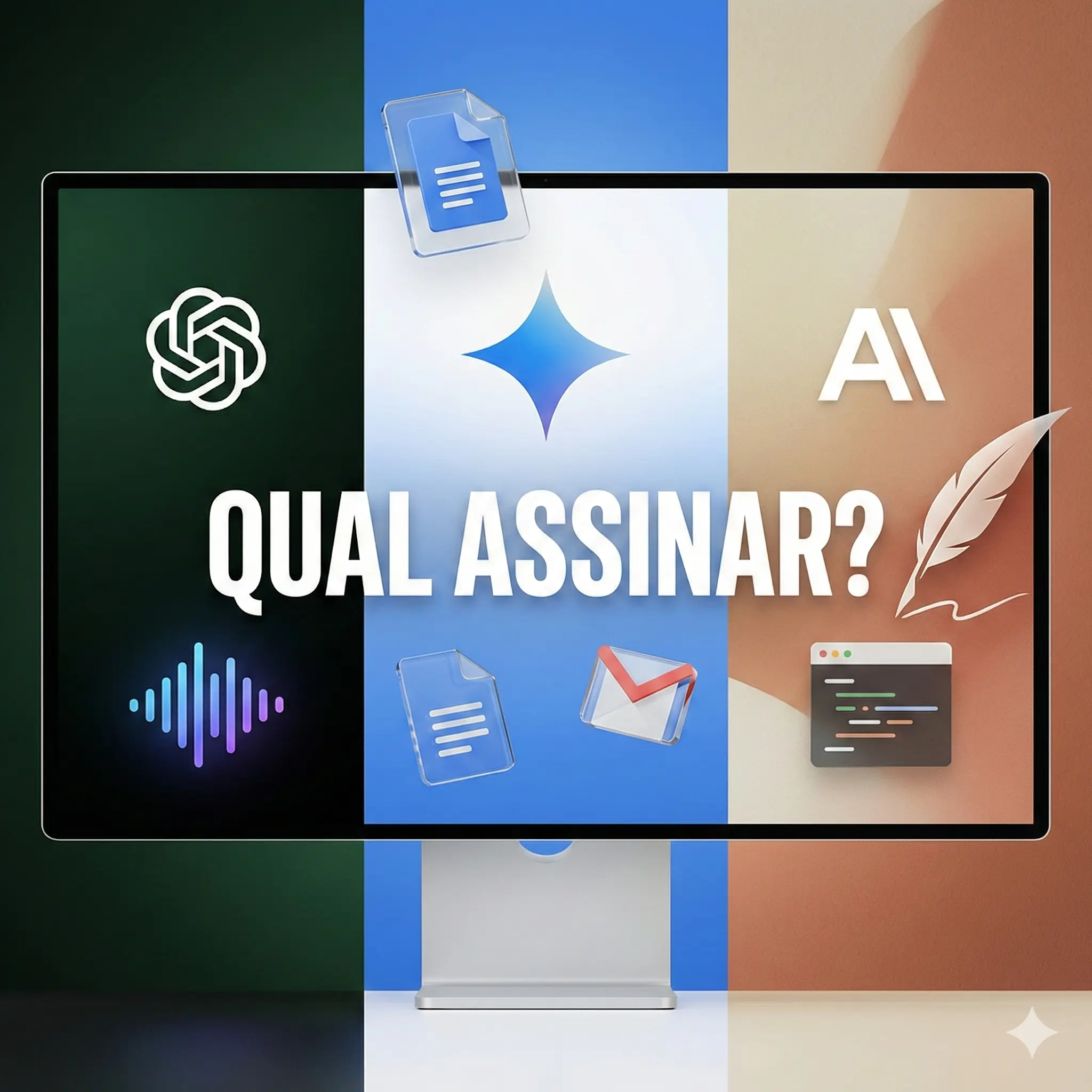 Você está pagando R$ 97-100/mês por assinatura IA (ChatGPT Plus, Gemini Advanced, OU Claude Pro) escolhida porque “todo mundo usa” OU “vi no YouTube” SEM testar se aquela IA específica é realmente a MELHOR pro SEU caso de uso específico = desperdiça R$ 1.200/ano em ferramenta que te entrega 60-70% do resultado que outra IA entregaria 95% melhor pro que VOCÊ precisa.