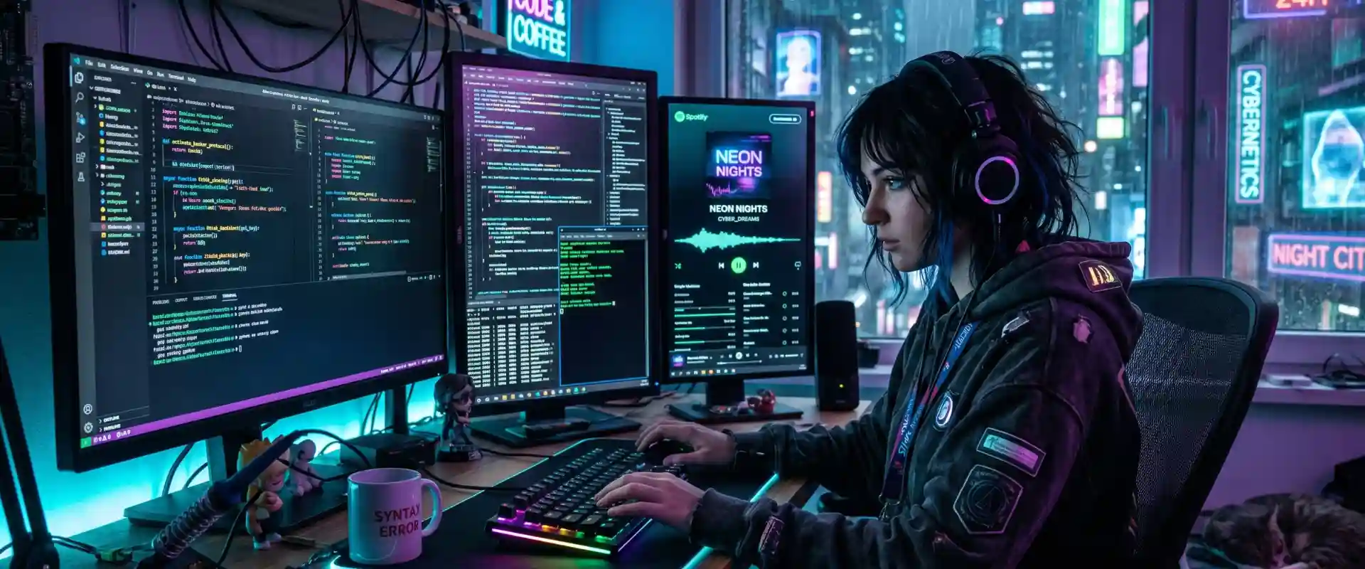 🎧 Prompt A-01 — Programação de madrugada com vibe cyberpunk