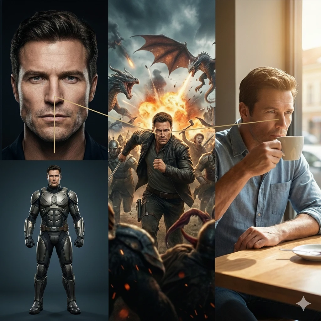 - Para travar a identidade: “Use the attached image as the strict reference for the character’s identity. Generate a new image of this character sitting in a cafe. Keep facial features 100% identical.”
