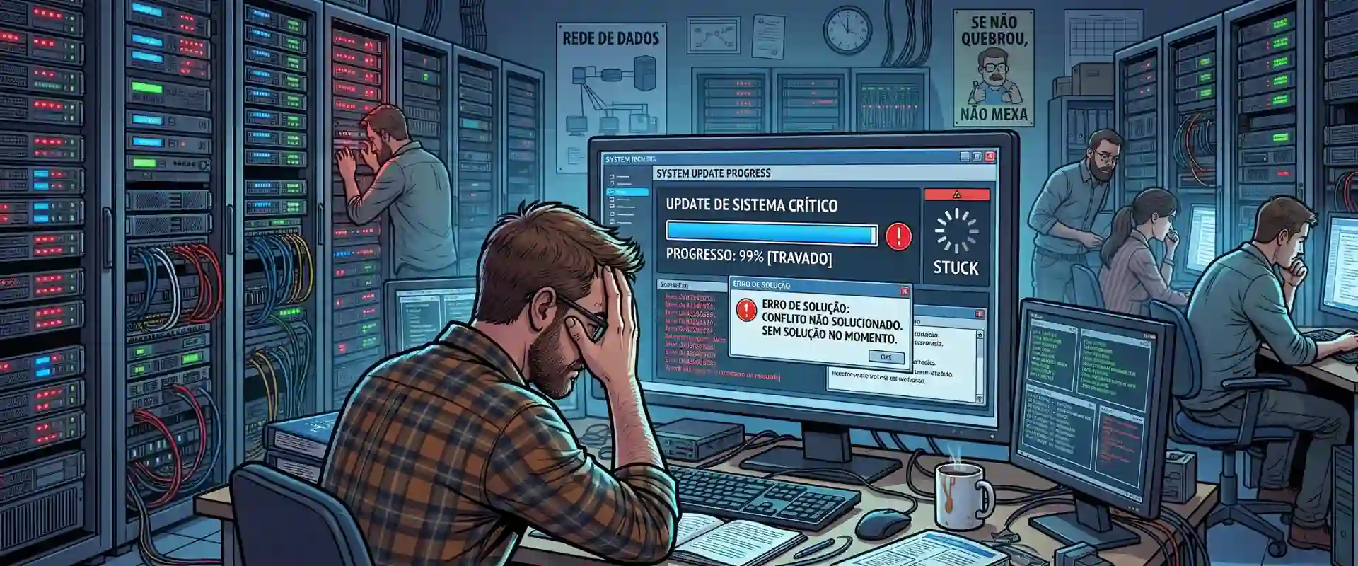 Resultado: “Reiniciamos o servidor e o sistema voltou ao normal.” — honesto, mas parece descuido. A diretoria pensa “ficou 2 horas fora por causa disso?”