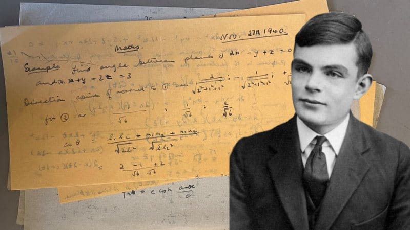 Documentos raros de Alan Turing, pai da computação, são salvos do descarte e vão a leilão histórico.