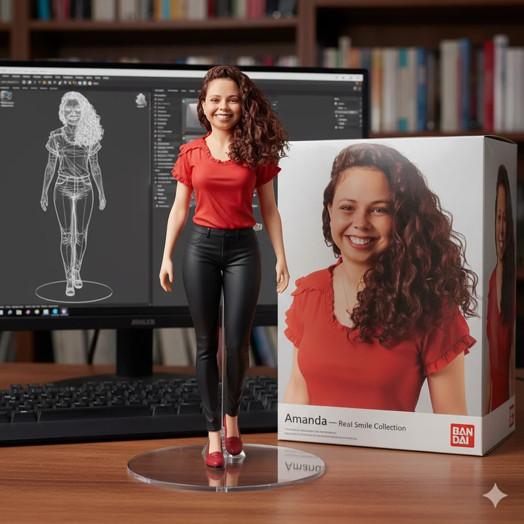 Você é fã de colecionáveis, devora animes ou simplesmente ama a ideia de ter algo totalmente único que te represente? Já imaginou ter uma figurine estilo Bandai, ultra-realista, com seu rosto, sua roupa, em uma embalagem profissional… mas desistiu ao ver os preços (facilmente R$300, R$500 ou mais)? A frustração de querer essa lembrança especial exclusiva e achar que é inacessível ou complicado demais é real.