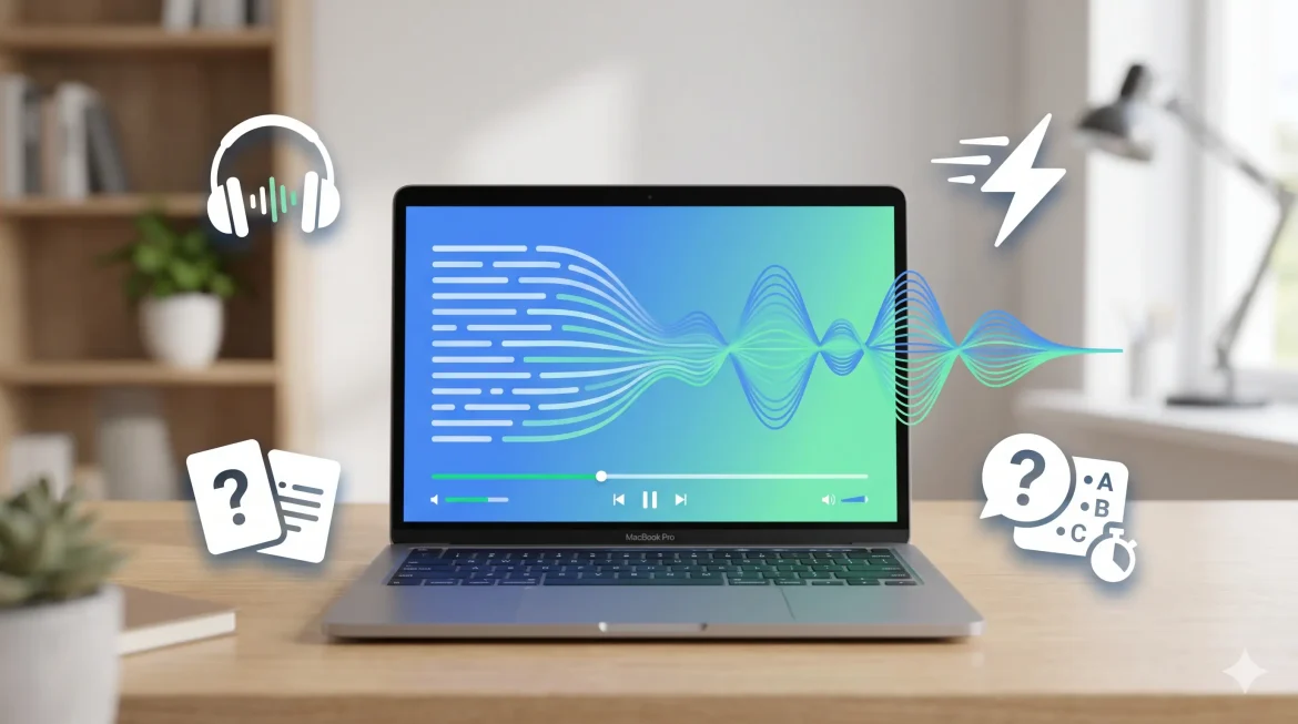 Audio Overview em português para escutar no trajeto + Video Overview cinemático para fixar conceitos visuais complexos.
