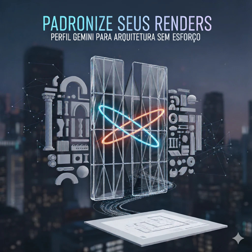 - Este guia ensina a criar um “perfil arquitetônico”: um prompt-base mestre no Gemini que define seu estilo visual padrão (luz, materiais, câmera) para todos os seus renders.