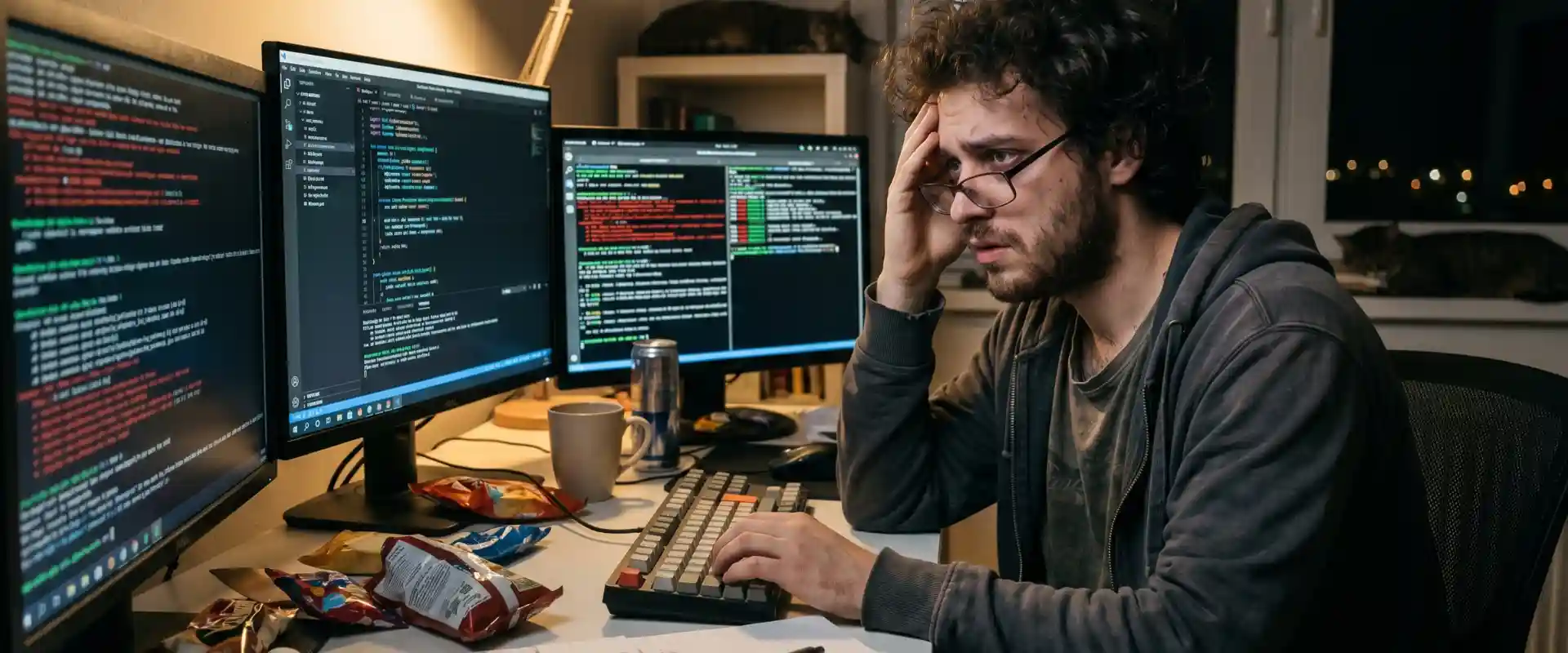 A hora extra virou um vício cultural disfarçado de virtude. Você passa a acreditar que trabalhar mais horas comprova comprometimento, diferencia você da média e te coloca no radar para promoções. Enquanto isso, paga com saúde mental, relacionamentos e a lenta erosão da sua capacidade criativa — o único ativo real de um desenvolvedor.